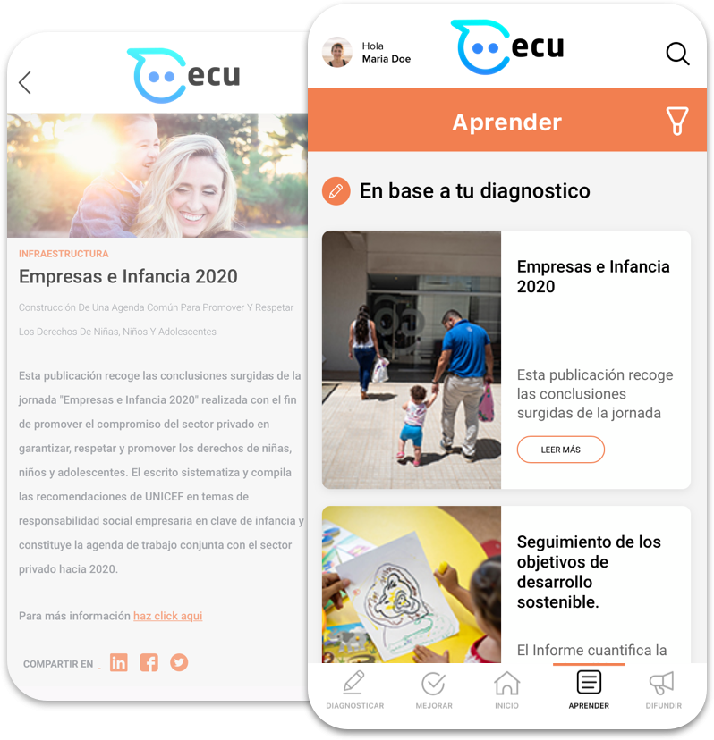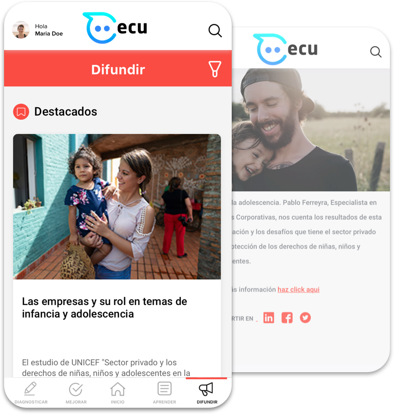 La plataforma digital de ECU es una herramienta de mejora continua desarrollada por UNICEF con el apoyo del socio implementador Equipo Latinoamericano de Justicia y Género (ELA).